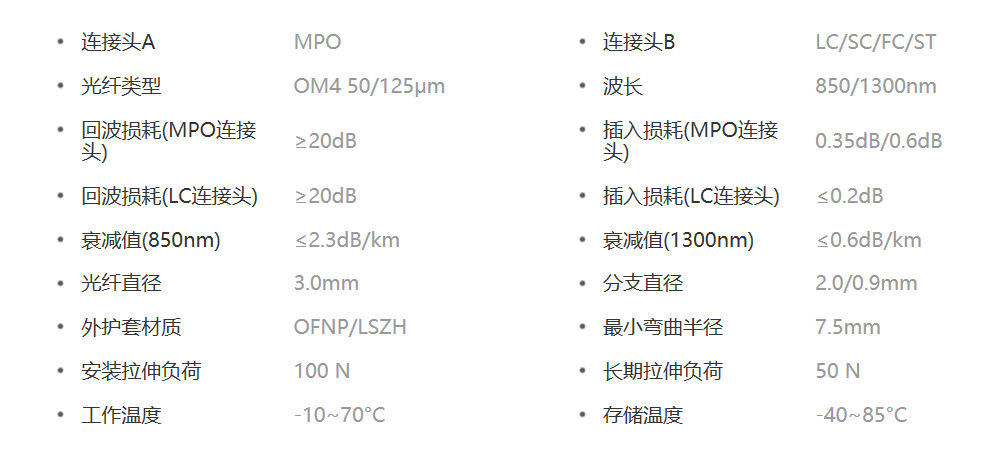 光纤定制: MPO/MTP分支光纤跳线,MPO分支LC/SC/ST/FC,多模、单模、长度可按需求定制。 |